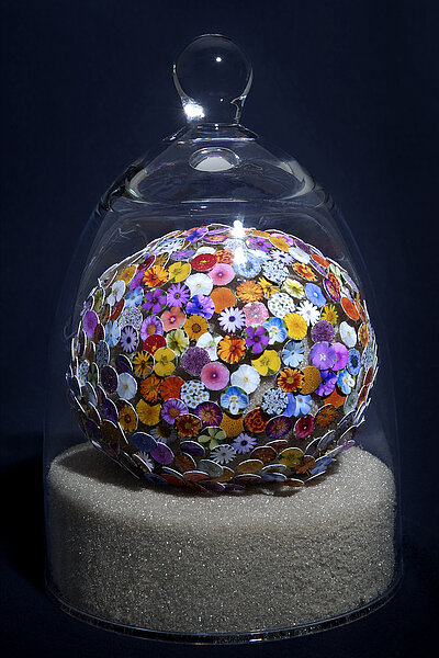 Dans sa pratique, l'acte photographique est une tentative constante de percevoir l’invisible et de retenir ce qui tend à disparaître. À travers la mise en scène d’objets recomposés, sa démarche opère une reconstruction du rêve, de l’inconscient, permettant un passage de l’intérieur vers l’extérieur. Son vocabulaire se constitue d’éclats de miroir, d’écrins, de jouets fragiles, d’ossements, de chair et de morceaux de masques qui forment un langage poétique menant vers d’autres lieux intimes, d’autres bulles et univers oniriques, créant ainsi une collection d’objets qu’on n’approche qu’en rêve.