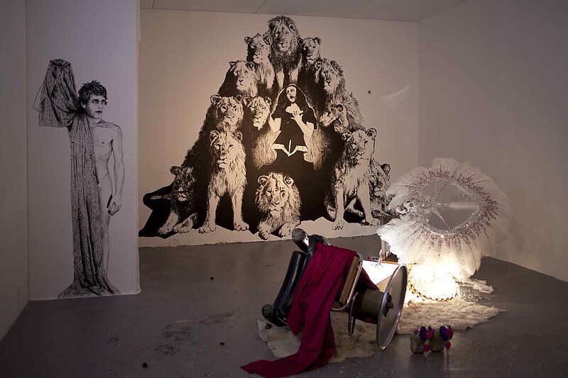 Issu de l'univers circassien, il saisit les images de son enfance qu'il dépose par petites touches dans des pièces souvent érotisées, empruntes de baroque. Une représentation hybride entre lieu public et sphère privée.