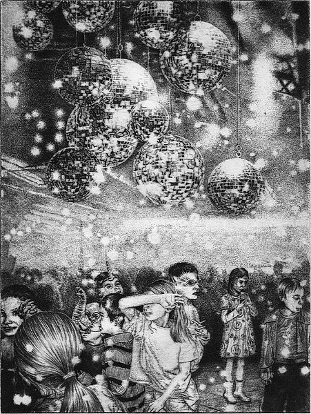 En réinterprétant l’émotion vécue, des atmosphères émanent du tumulte humain et donnent leur ton aux gravures obscures et fantastiques, comme les témoins d’une vérité altérée.