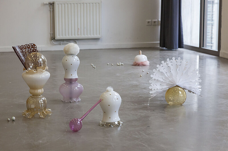 En créant des récits et des mises en scène multiples, l'artiste utilise un langage hybride qui, à partir d'une proposition sculpturale, emprunte autant à la performance, qu’à la vidéo et à la photographie. Deliciae cherche à faire émerger un dialogue entre la sculpture, le personnage et le décor, dans lequel les frontières entre les pratiques s'estompent et où apparaissent leurs affinités formelles, plastiques ou poétiques.