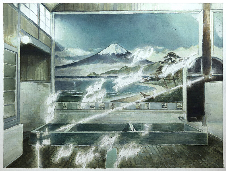 Autour du thème de l’atelier, Pierre Bellot convoque ce méta-questionnement dans son projet de création actuel. Il s’agit alors de représenter des espaces imaginaires représentant en réalité l’endroit même où les images se créent. Propice au collage des motifs et à l’association d’objets, le travail de Pierre Bellot – tout comme dans les Ménines – cherche à nous montrer ce qu’il se passe derrière la réalisation même d’une peinture : la mise en scène du contexte de travail de l’artiste.