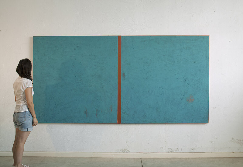 À la Casa de Velázquez, Silvia Lerín poursuit son projet Copper skin : une série autobiographique qui étudie la façon dont le cuivre, au cours de son processus d'oxydation, couvre sa surface d’un vert turquoise caractéristique, qui donne naissance à une sorte d'épiderme du métal.
