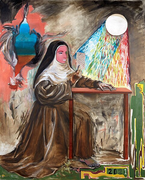 Les peintures de Carmen Ayala Marín se trouvent traversées par de grands thèmes comme le désir, la précarité, l’émigration, le féminisme et le sacré.