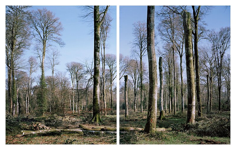 Munie de sa chambre photographique et de son micro, souvent accompagnée de personnes qui vivent et font l’espace rural – paysans, gardes forestiers, techniciens bocages... – elle arpente la campagne. Elle les suit, les enregistre, échange et les photographie, eux et leurs paysages.