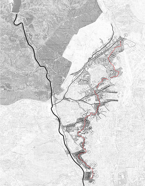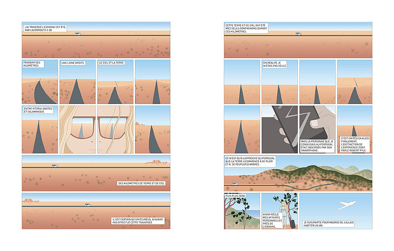 En dehors du centre-ville, Madrid est une ville très verte. Autrefois parcourue de nombreux ruisseaux, elle bénéficie de la proximité du massif de la Guadarrama. Au fil de son projet, Jeanne Lafon arpente le territoire pour éprouver la trame vivante de la ville. Traversant des parcs, des friches, des cœurs d’îlots, des remblais autoroutiers, elle observe les phénomènes d’interactions entre les composantes physiques des lieux, le ressenti et l’action.