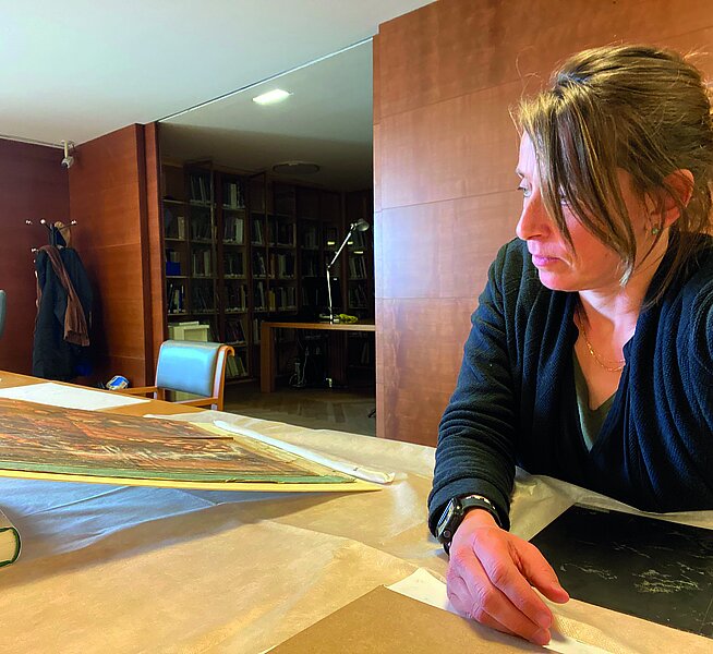 En Espagne, elle se lance ainsi dans une recherche qui vise à retracer la vie naissante du papier en Europe; s’intéressant à la fois à son histoire et à ce que nous disent, aujourd’hui, les reliques et fossiles de sa production et de sa conservation.