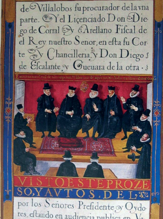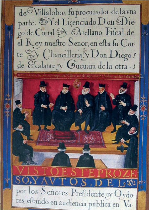 Fig.:Tribunal de la Sala de Hijosdalgo de la Chancillería de Valladolid. Carta ejecutoria de hidalguía librada en favor de don Juan Gutiérrez de Solórzano. Valladolid, 10 de diciembre de 1611. Madrid, Archivo Histórico Nacional. Sección Diversos. Títulos y familias , carp. 72, p. 136.