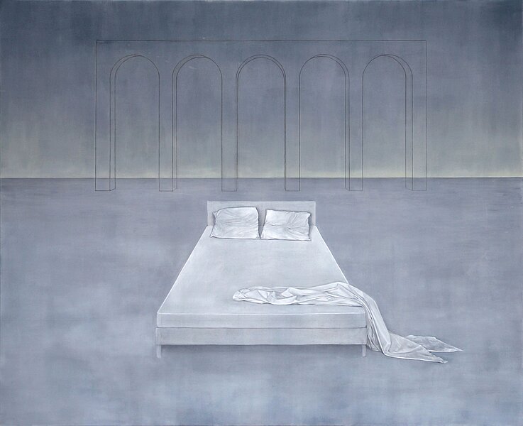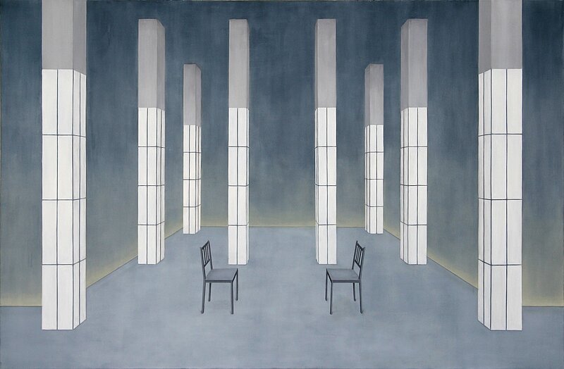 Arquitectura y espacios vacíos ocupan un lugar central en la búsqueda pictórica de Mathilde Lestiboudois. Alimentada con viajes, exploraciones y descubrimientos en ocasiones fortuitos, se apropia de la atmósfera de los lugares para componer unas escenas cuyos fragmentos hacen oscilar la narración entre pasado y presente, entre ficción y realidad.