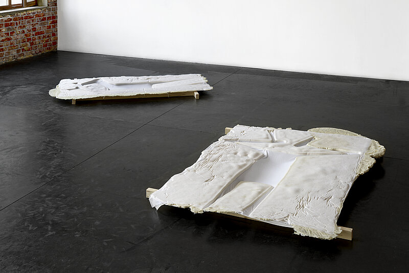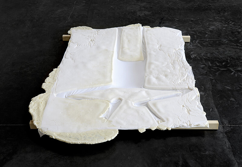 Del diseño surge el patrón, del patrón nace la membrana y de la espuma expansiva brota la forma. Con un gesto que nunca intenta controlar en su totalidad, la artista deja que estos organismos espumosos tomen forma y se abandonen a lo inesperado. Después, con un método casi quirúrgico, vuelve hacia ellos, los sutura, los remienda, los venda y los repara; toma el control de las vicisitudes del tiempo y de la materia.