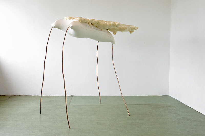 Para esta artista multidisciplinar, el dibujo es una fase esencial y crucial de su trabajo con el volumen. Bocetos que se transforman en prototipos que, al entrar en contacto con la materia, se metamorfosean para hincharse de vida tanto como de accidentes. Así surgen grandes formas orgánicas, «dibujos hinchados», que nos intrigan porque parecen profundamente enigmáticos a la par que terriblemente familiares.