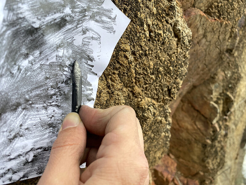 A partir de esta exploración, que la llevará de Madrid a Burgos pasando por Valencia, la artista crea una colección dibujada. Una serie de dibujos que, alimentada por este estudio avanzado y guiado por una observación fina y precisa, se concibe como una restitución del contacto de la artista con la obra «fosilizada». Un trabajo de retransmisión que, de manera casi paradójica, participa en la transformación y el borrado de la imagen inicial.