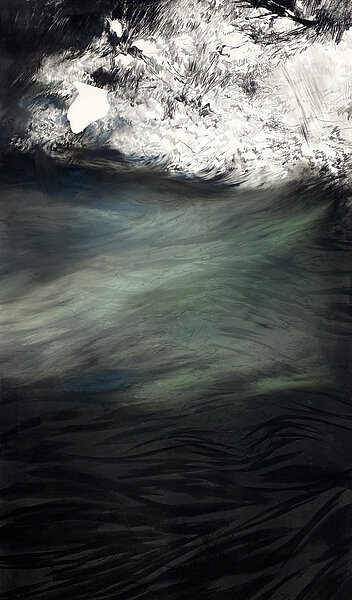 Los dibujos de Stéphanie Mansy se alimentan de un poderoso vínculo con la naturaleza. Aunque de sus obras suelen surgir formas orgánicas, también se desprende cierta abstracción. Una abstracción viva, vital, que respira. Porque antes del gesto está la inmersión, que la artista integra plenamente en su proceso. De lo que observa, retiene la esencia, el aliento, para volver a plasmar después en el papel lo que queda de este lenguaje sensible. El paisaje como energía y movimiento. El mundo como materia.