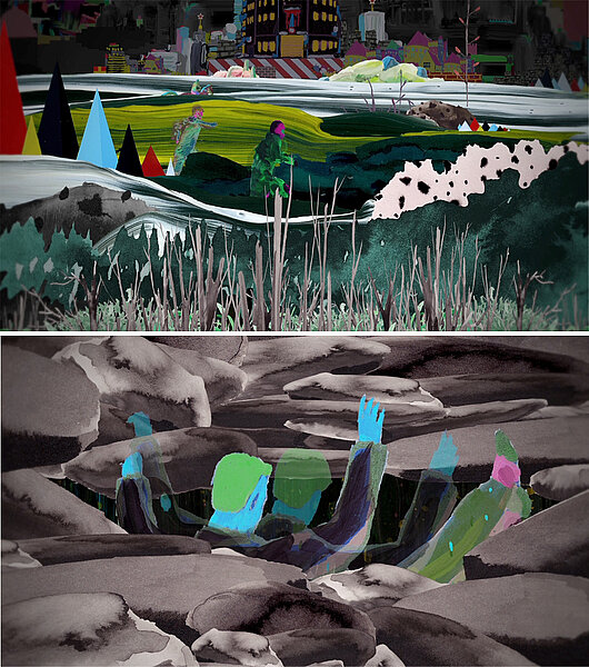 Esta imagen poética conectará con varias ideas contrapuestas: lo natural y lo artificial, lo orgánico y lo geométrico, lo fértil y lo valdío… Para ello se emplearán diversas referencias visuales relacionadas con accidentes geográficos que por su carga simbólica remitan a conceptos como lo abrupto, lo oculto o lo misterioso (montañas, cuevas, glaciares…). Estos espacios sugieren planteamientos «románticos» que evocan un anhelo por el descubrimiento, por lo lejano, lo espiritual o lo infinito.