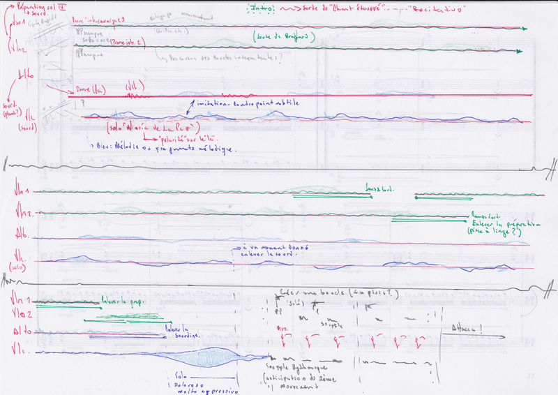 Su pieza mixta, Vestigios – Canto de las moscas, que evoca las nociones de ritual y de lamento, tiene su punto de partida en el conflicto colombiano y se articula en torno a una cuestión central: ¿cómo representar la pena de la guerra a través de los sonidos y de la música?