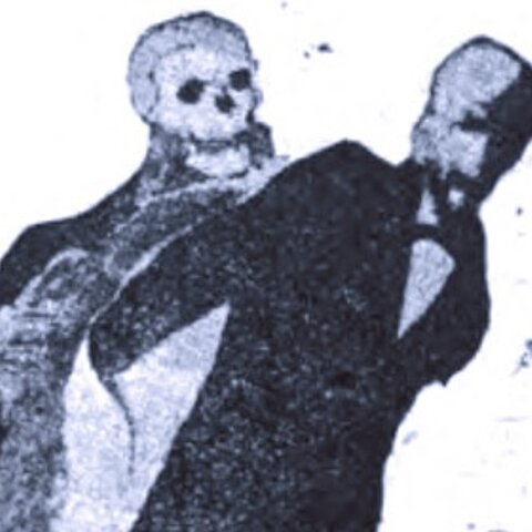 Ilustración. El «otro» camarero, que sigue superviviendo en el mismo turno que tuvo en vida y ayuda un poco al que se pone el gabán solo.