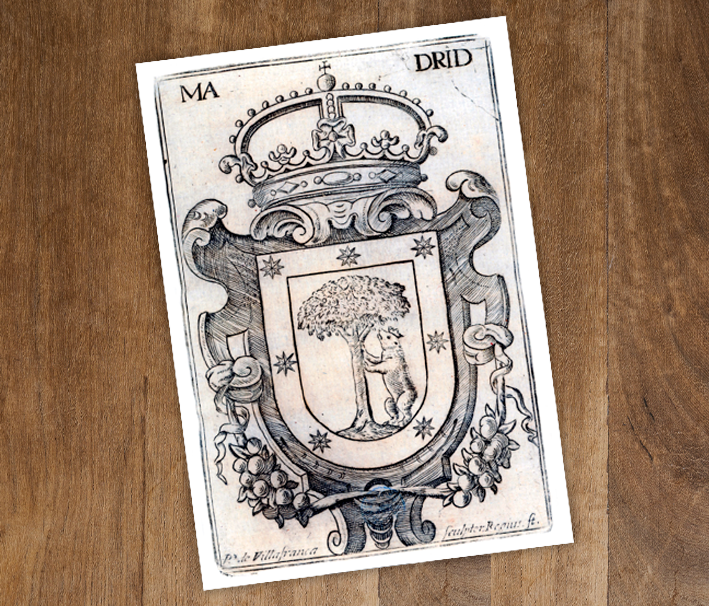 Pedro de Villafranca, Escudo de la villa de Madrid, Grabado, siglo XVII. Biblioteca de la Casa de Velázquez, fondo de reserva. Donación del marqués del Saltillo (1957).