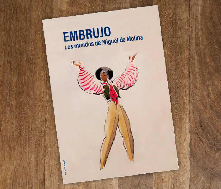 La exposición Embrujo, Miguel de Molina (Casa de Velázquez, septiembre-octubre de 2024) repasa la vida y el arte vanguardista de esta gran figura (1908-1993) de la cultura española, desde sus inicios en el Madrid de los años treinta hasta su retirada de los escenarios en 1960, en Buenos Aires, donde vivió en el exilio. Intérprete excepcional, el «Rey de la copla» revolucionó el mundo de las artes escénicas y sigue siendo una referencia para muchos artistas contemporáneos. El dibujo de la portada es uno de los documentos procedentes del fondo de la Fundación Miguel de Molina (correspondencia, escritos, fotografías, partituras, trajes de escena, maquetas de escenografía) que da testimonio de la riqueza de su obra creativa y rinde homenaje a un artista reprimido por el régimen franquista debido a sus convicciones políticas y su orientación sexual.