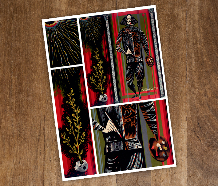 Gran figura del renacimiento del tapiz en el siglo XX y residente en la Casa de Velázquez entre 1930 y 1932, Marc Saint-Saëns diseñó para la segunda Casa, reconstruida a finales de la década de 1950, dos tapices monumentales, uno de los cuales representa a Quevedo y Velázquez —cuyos detalles se reproducen en la portada— y el otro a El Greco y Góngora. Conservados en el Mobilier National, estos tapices solo se expusieron en la Casa con motivo del 50.º aniversario de la institución, en marzo de 1979, y permanecieron en Madrid hasta 2003. Regresaron en 2024 y ahora se encuentran colgados en el vestíbulo de la biblioteca, el espacio para el que fueron creados.