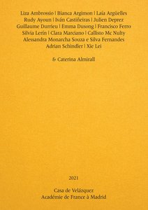 Ce catalogue présente le travail des artistes de la promotion 2020-21 de l'Académie de France à Madrid : Liza Ambrossio, Bianca Argimon, Laía Argüelles , Rudy Ayoun, Iván Castiñeiras, Julien Deprez, Guillaume Durrieu, Emma Dusong, Francisco Ferro, Silvia Lerín, Clara Marciano, Callisto Mc Nulty, Alessandra Monarcha Souzae Silva Fernandes, Adrian Schindler et Xie Lei.