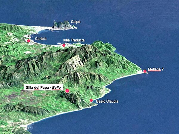 Site clé de la rive nord du détroit de Gibraltar, l’oppidum de Bailo / La Silla del Papa fut occupé pendant tout le premier millénaire avant notre ère, jusqu’à son abandon au début du règne d’Auguste, date à laquelle une nouvelle ville, qui prit plus tard le nom de Baelo Claudia, fut construite sur la côte. La longue histoire de Bailo est marquée par des contacts successifs avec les Phéniciens, les Carthaginois et les Romains, sur un fond d’échanges continuels avec l’autre rive du Détroit.