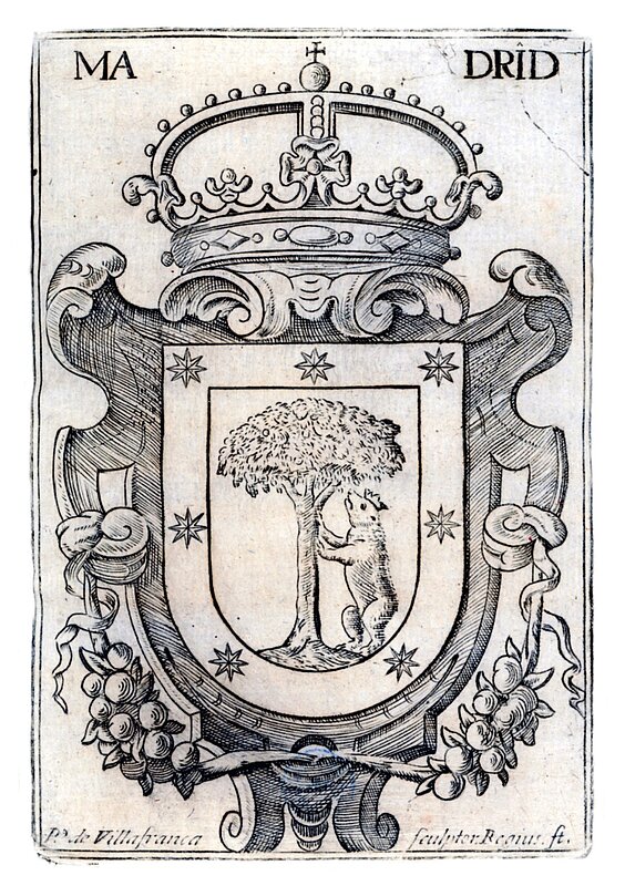 Pedro de Villafranca, Escudo de la villa de Madrid, Grabado, s. XVII. Biblioteca de la Casa de Velázquez, reserva. Donación del marqués del Saltillo (1957).