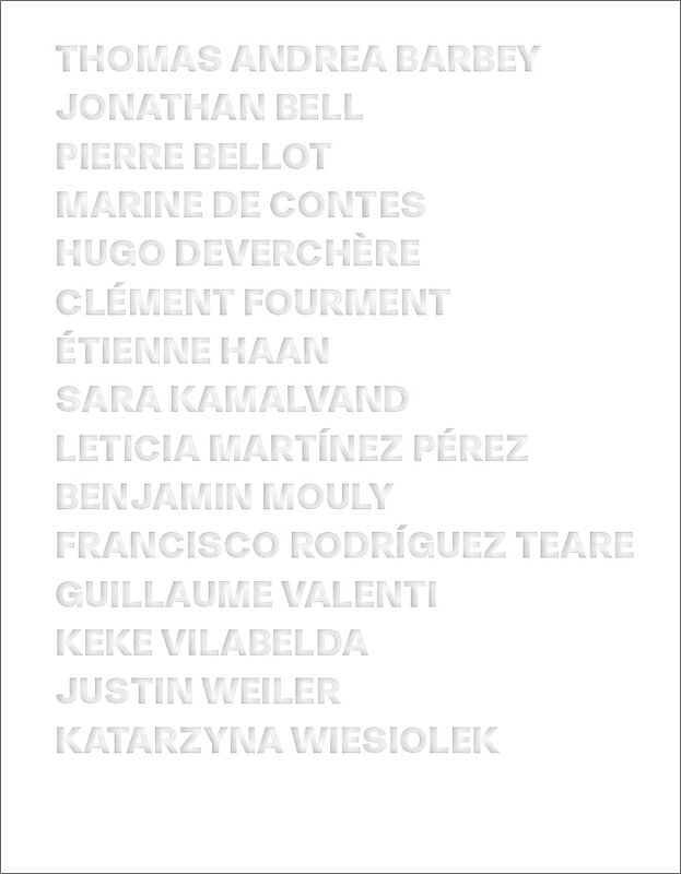 Thomas Andrea Barbey, Pierre Bellot, Marine de Contes, Hugo Deverchère, Clément Fourment, Sara Kamalvand, Leticia Martínez Pérez, Benjamin Mouly, Francisco Rodríguez Teare, Guillaume Valenti, Keke Villabelda, Justin Weiler, Katarzyna Wiesiolek. Jonathan Bell, Étienne Haan.