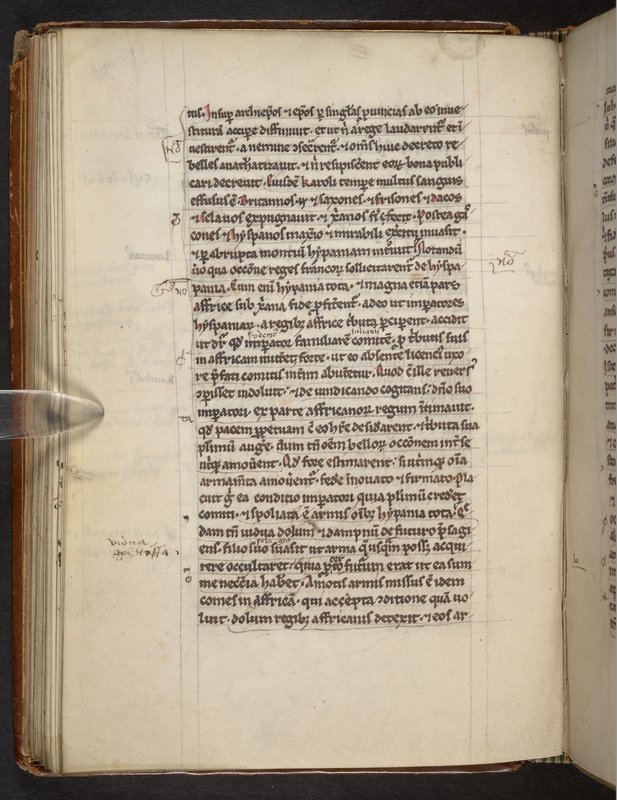 Fig.: La conquista islámica de la Península Ibérica según el historiador inglés Raúl el Negro a finales del siglo XII (Londres, British Library, Cotton ms. Cleopatra C X, fol. 36v).