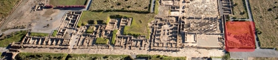 Les recherches menées sur le forum de la ville ont donc repris en 2012 dans le cadre de ce programme de recherche pluriannuel de la Casa de Velázquez, sur la marge orientale de l’îlot monumental, un des derniers secteurs non fouillés du forum (fig. 2). La zone d’intervention couvre environ 450 m2. Elle est délimitée au sud par le decumanus maximus, à l’est par le cardo 4, à l’ouest par le petit couloir d’accès au forum longeant la basilique et au nord par les vestiges de la dite « grande domus » partiellement fouillée en 1975.