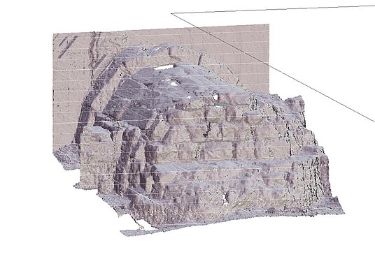- Levantamiento topográfico de la plataforma que domina la colegiata de Santa María la Mayor, con localización de las estructuras medievales (aljibe, base de torre, ...). Esta fase se desarrollará al Este de la colegiata en un espacio delimitado por el Barranco de Payuala y las Pasarelas del Vero. La hipótesis inicial es que el hábitat musulmán asociado a la fortaleza se ubicaba en este sector, a diferencia del hábitat cristiano que se extiende al Oeste de la colegiata.