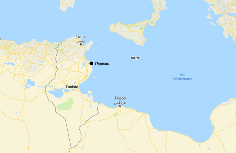 La ville est mentionnée par de nombreux auteurs anciens de langue grecque ou latine. Elle figure également dans la géographie de Ptolémée et la Table de Peutinger, mentions qui permettent de situer aisément la ville au cap de Ras Dimass entre Lemta et Salakta (Younes 1997). Cette identification est d’ailleurs attestée par les écrits d’Al Maliki au XIe siècle. Du XVIIIe siècle à la première moitié du XXe siècle, ces vestiges suscitent d’abord l’intérêt de différents voyageurs érudits puis de quelques savants dont certains ont laissé des descriptions parfois très détaillées des quelques vestiges encore visibles de la ville à leur époque (l’enceinte de la ville, le môle, l’amphithéâtre et les grands réservoirs). Citons par exemple les relevés d’A. Daux (Daux 1869). Dans le dernier tiers du XXe siècle, des fouilles de sauvetages, partiellement publiées, ont été conduites dans l’amphithéâtre et sur les nécropoles de la ville (Fantar 1978). Une large partie de la documentation disponible a été rassemblée par A. Younes dans sa thèse soutenue en 1997, publiée en 1999 et intitulée « Recherches sur la ville portuaire de Thapsus et son territoire en Byzacène dans l’Antiquité ». Ce travail a le grand intérêt de présenter les résultats de nombreuses prospections pédestres conduites en 1994-1995 sur le territoire de la ville qui ont localisé de modestes mais très nombreuses structures antiques (nécropoles, puits, citernes, murs, fours à chaux, etc.). Depuis quelques années, l’Institut national du patrimoine (INP) a repris les recherches archéologiques sur le site de la ville. Leurs travaux se sont concentrés sur deux secteurs : un édifice monumental encore non identifié situé au cœur de la ville, et sur les vestiges d’un petit fortin médiéval, peut-être lui-même installé sur les fondations d’un temple antique à proximité de la plage. Le temps et les moyens manquent toutefois pour permettre le développement d’une fouille d’ampleur sur ces deux secteurs.
