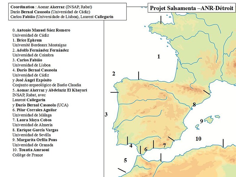 De ahí que desde hace aproximadamente un año se hayan iniciado contactos entre los diversos equipos de investigación que trabajan sobre recursos marinos en la Antigüedad en España para generar sinergias entre todos ellos, también con el objetivo de cohexionar a los grupos internacionales que trabajan en estas temáticas. Es importante tener en cuenta en estas líneas la dimensión internacional de las temáticas haliéuticas, ya que al menos en el Mediterráneo Occidental afectan a España (Baetica y Tarraconense), a Portugal (Lusitania) y a Marruecos (Mauretania Tingitana). En este contexto se sitúa el proyecto ANR Détroit, coordinado por la Casa de Velázquez (Dr. Laurent Callegarin) y financiado por el gobierno francés (https://www.casadevelazquez.org/es/investigacion/proyectos/horizons- atlantiques-des-societes-mediterraneennes/detroit/detroit/presentacion/), que ha constituido un catalizador inicial muy fructífero, ya que ha permitido en los últimos meses iniciar las colaboraciones, a través de actividades diversas, coordinadas y retroalimentadas todas ellas por miembros de los equipos peticionarios de esta red, como por ejemplo la reunión Recursos del mar y productos transformados en la Antigüedad. La aportación y los límites de la arqueoictiología al conocimiento de las salsas y salazones del litoral atlántico –febrero, 2014 - (https://www.casadevelazquez.org/es/investigacion/novedad/recursos-del-mar-y- productos-transformados-en-la-antigueedad/) o la Mesa Redonda denominada Las factorías de salazones de pescado en Occidente en la Antigüedad –octubre, 2015) (https://www.casadevelazquez.org/es/investigacion/novedad/las-factorias-de-salazones-de- pescado-en-occidente-durante-la-antigueedad/), germen del grupo de trabajo denominado SALSAMENTA, pilotado por la Casa de Velázquez.